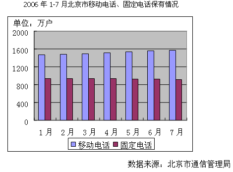 固定電話用戶增長放緩,在北京這種移動電話普及率很高的地區(qū),甚至出現(xiàn)了負(fù)增長。