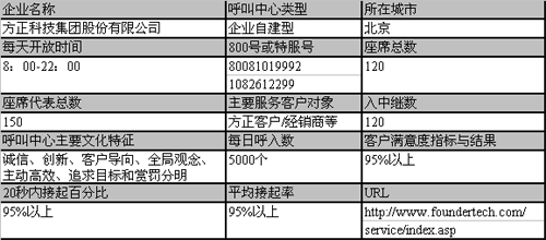 運(yùn)營(yíng)6年來(lái),方正呼叫中心的運(yùn)營(yíng)管理水平已不斷完善,客戶(hù)滿(mǎn)意度的不斷提高。據(jù)稱(chēng),目前該呼叫中心客戶(hù)滿(mǎn)意度已達(dá)到95%以上。