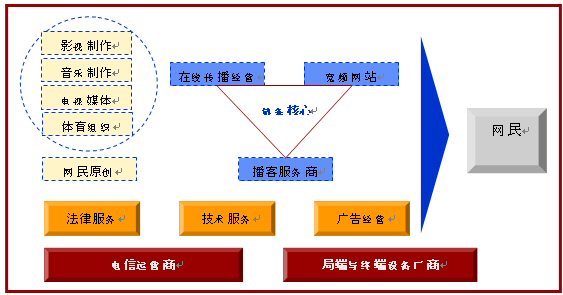 對于互聯(lián)網(wǎng)來講,網(wǎng)絡(luò)視頻代表網(wǎng)絡(luò)內(nèi)容展現(xiàn)形式的變革,而這種變革將帶動一個產(chǎn)業(yè)鏈條的發(fā)展,同時產(chǎn)業(yè)鏈條各個環(huán)節(jié)也會反過來制約網(wǎng)絡(luò)視頻的發(fā)展。2006年以前的中國網(wǎng)絡(luò)視頻發(fā)展處于一個初級階段,聚集網(wǎng)民注意力,形成網(wǎng)民對網(wǎng)絡(luò)視頻內(nèi)容的瀏覽習(xí)慣是這個階段網(wǎng)絡(luò)視頻發(fā)展的核心。但是因為商業(yè)模式的不成熟,網(wǎng)絡(luò)視頻盈利能力弱的基本原因,產(chǎn)業(yè)鏈條中的多個環(huán)節(jié)都成了抑制網(wǎng)絡(luò)視頻發(fā)展的因素。例如:寬頻形式對網(wǎng)絡(luò)資源的要求一方面加大了寬頻內(nèi)容運營的成本,另一方面對網(wǎng)民終端的網(wǎng)絡(luò)條件要求也明顯高于以前的網(wǎng)絡(luò)條件,而這些問題要求電信運營商既要降低基礎(chǔ)網(wǎng)絡(luò)資源的價格又要提高網(wǎng)絡(luò)資源的質(zhì)量,這些工作和讓步短時間內(nèi)電信運營商很難完成,寬頻內(nèi)容運營商的運營成本就保持居高不下而網(wǎng)民的網(wǎng)絡(luò)視頻效果就差強(qiáng)人意了。像這樣充滿著矛盾因素的抑制環(huán)節(jié)在整個產(chǎn)業(yè)鏈條中還有很多,因此2006年以前的中國網(wǎng)絡(luò)視頻發(fā)展沒有突破產(chǎn)業(yè)束縛進(jìn)入發(fā)展的快車道。