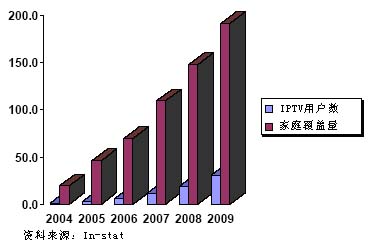 2006年是發(fā)達國家網絡運營商大舉進軍電視服務的一年,對IPTV的推廣力度是前所未有的,新的服務、新的企業(yè)層出不窮。在歐洲,由于競爭的壓力使電信運營商急切地推出三包服務(網絡接入,IP電信,IPTV三位一體);在日本,得益于現(xiàn)有網絡速度的升級,多個運營商都已經加入到IPTV的市場競爭中來;在美國,最大的兩家電信運營商都宣布他們接近IPTV的推廣階段,但是迫于地方電視保護法案使其具體實施仍存在不確定因素。In-stat認為,IPTV自2005年起突然升溫,其驅動力是多方面的;而面臨的阻力以及帶來的效益也不僅限于收入的層面。在未來的幾年,IPTV產業(yè)會取得很快的發(fā)展,但仍可能無法動搖傳統(tǒng)電視運營方式(有線,衛(wèi)星,地面廣播等)的地位。