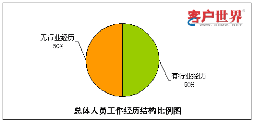 呼叫中心由于高壓力、24小時(shí)輪班等工作特性,有相當(dāng)比例的流失是因?yàn)椴贿m應(yīng)工作環(huán)境而導(dǎo)致的,其中一個(gè)主要原因就是新入職員工想象中的工作環(huán)境和現(xiàn)實(shí)情況大相徑庭。而有呼叫中心工作經(jīng)驗(yàn)的員工對(duì)于這點(diǎn)的適應(yīng)性相對(duì)較強(qiáng),因此我們對(duì)呼叫中心員工是否有行業(yè)經(jīng)歷方面的情況進(jìn)行了統(tǒng)計(jì)分析。
