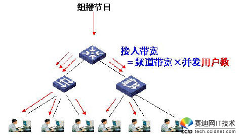 在本方案中,根據(jù)IPTV業(yè)務特性,對VOD、接入認證等這部分通常采用單播方式來處理,對于BTV、nVOD這樣的業(yè)務則采用組播方式來處理。