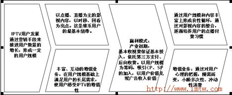 IPTV產(chǎn)業(yè)的發(fā)展,前期是通過其中的特殊功能來吸引用戶,如時移等,但之后,真正能吸引用戶的其中的某項(xiàng)業(yè)務(wù)。這在IPTV的宣傳策略上需要重視。