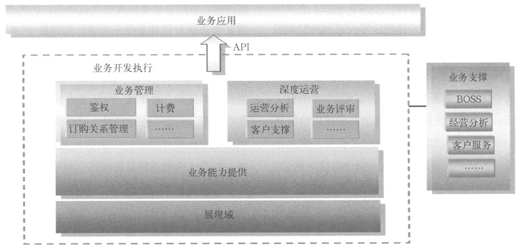 根據(jù)移動增值業(yè)務(wù)特征及業(yè)務(wù)部署、管理需求,目標網(wǎng)絡(luò)架構(gòu)中將實現(xiàn)業(yè)務(wù)與控制的分離,劃分業(yè)務(wù)控制域和業(yè)務(wù)開發(fā)執(zhí)行域,并可開放公共接口實現(xiàn)各增值業(yè)務(wù)應(yīng)用無差別的接入、管理及功能調(diào)用,以方便的實現(xiàn)業(yè)務(wù)的融合、業(yè)務(wù)功能的靈活組合,更利于高效、簡便的實現(xiàn)業(yè)務(wù)部署、開發(fā)及運營。