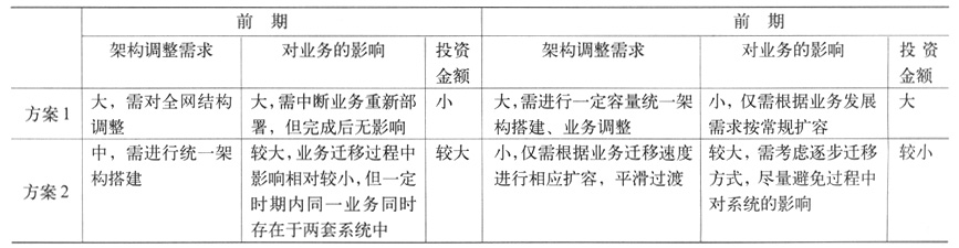 表1 移動增值業(yè)務(wù)網(wǎng)演進方案對比表