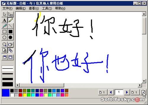 只要單擊“白板”,Netmeeting會啟動一個所有與會者共享的白板程序,與會人員可以在上面通過圖表信息、使用草圖或展示圖形來解釋概念。還可以復(fù)制桌面或窗口區(qū)域,將其粘貼到白板上,如圖13。