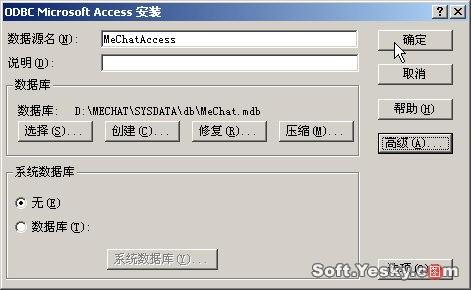 為使Mechat系統(tǒng)具有較高的運行效率,我們將其添加數(shù)據(jù)庫支持,單擊“開始”/“設(shè)置”/“控制面板”,選擇“治理工具”/“數(shù)據(jù)源(ODBC)”,切換至“系統(tǒng)DSN”,單擊“添加”按鈕啟動ODBC數(shù)據(jù)源添加向?qū),選擇“MicrosoftAccessDriver(*、mdb)”,然后在DSN屬性設(shè)置窗口設(shè)置數(shù)據(jù)源名稱為“MeChatAccess”,選擇數(shù)據(jù)庫文件為D:\MeChat\SysData\db目錄下的MeChat、mdb(如圖23)。設(shè)置完畢,單擊“確定”退出。