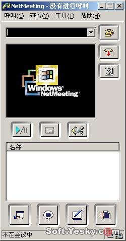 Netmeeting界面下方有四個按鈕,分別對應(yīng)了“共享”、“聊天”、“白板”和“傳送文件”四項主要功能(這四項功能需要在會議屬性中啟用,否則在會議中處于不可用狀態(tài))。
