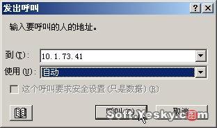 建立會議后,與會的計算機即可呼叫主持會議的主機,方法是單擊“呼叫”/“新呼叫”,或是單擊Netmeeting面板中的呼叫按鈕,打開呼叫對話框,輸入IP地址,并單擊“呼叫”即可,如圖8所示。
