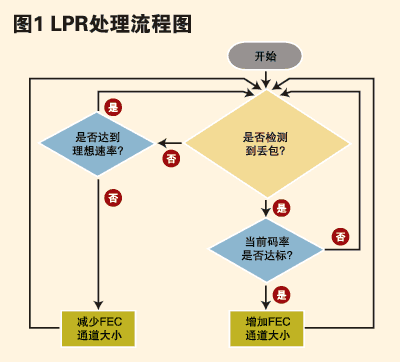 不同于大多數(shù)差錯(cuò)隱消或規(guī)避算法只介入接收丟包信息系統(tǒng)的方式,LPR會(huì)介入到視頻通話(huà)中的各級(jí)系統(tǒng)中,通過(guò)臨時(shí)將一部分通話(huà)帶寬分配給一個(gè)數(shù)據(jù)通道,從而用于發(fā)送FEC數(shù)據(jù)給接收系統(tǒng)來(lái)發(fā)揮作用。在網(wǎng)絡(luò)傳輸發(fā)生丟包時(shí),通過(guò)上述的一個(gè)循環(huán)處理,LPR就會(huì)增加或減少FEC數(shù)據(jù)通道的大小,直到找到必須分配給FEC數(shù)據(jù)通道的最小帶寬,從而使得接收系統(tǒng)能夠恢復(fù)所有丟失的數(shù)據(jù)包。