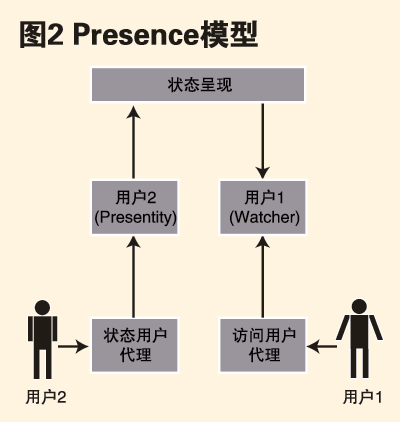 Presence用以傳達(dá)用戶(hù)狀態(tài)以及用戶(hù)通過(guò)一組設(shè)備進(jìn)行通信的能力,如:聯(lián)機(jī)、忙碌、離開(kāi)、脫機(jī)等狀態(tài)。這些狀態(tài)信息反映出與該用戶(hù)與其他用戶(hù)實(shí)現(xiàn)通信的可能性。