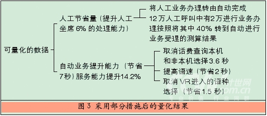 從圖3的分析中可以看出,如果人工服務(wù)采取1項(xiàng)措施,自動(dòng)業(yè)務(wù)采取3項(xiàng)措施,則可以得出如下的量化結(jié)果: