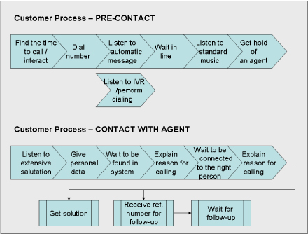 那么,從企業(yè)內部的觀點出發(fā)看我圍繞這次簡單的預定流程所產生的總體客戶體驗如何呢?這需要好好評估,我一共只打了兩次電話并在24小時內得到解決,而且我們之間的互動——很有可能——已經被記錄在航空公司的CRM系統中。但是如果你問問作為客戶的我,我會給出一個完全不同的場景描述:首先,提供給我的可聯絡電話號碼實在太多了,其次,沒有說明這些電話號碼處理的“范圍”各是什么,再次代理質量不合格,她完全不知道自己該干什么,還得求助于另外一個同事,最后,也是很重要的一點,最終提交的解決方法并不能讓人接受。這些信息——或者說的更準確些,客戶的評價——出現在呼叫中心的報告里了嗎?出現在哪兒?沒有,這一方面是因為流程并不是以客戶為中心的觀點來定義的,另一方面因為我們是人,我們努力的在工作,不希望自己變成透明人。