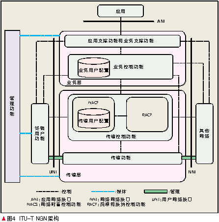 下一代網(wǎng)絡(luò)(NGN)的標(biāo)準(zhǔn)是當(dāng)前通信標(biāo)準(zhǔn)領(lǐng)域的熱點(diǎn)研究課題之一,對(duì)NGN架構(gòu)的研究主要在高級(jí)網(wǎng)絡(luò)電信與因特網(wǎng)融合業(yè)務(wù)和協(xié)議(TISPAN)組織和國(guó)際電信聯(lián)盟電信標(biāo)準(zhǔn)部(ITU-T)兩大國(guó)際標(biāo)準(zhǔn)組織內(nèi)進(jìn)行。