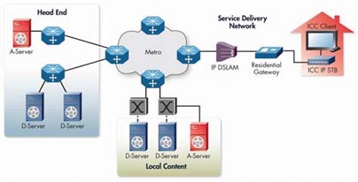 獲取服務(wù)器(A-Server,Acquisition Servers)是從本地或者遠(yuǎn)端的視頻源實(shí)時(shí)獲取內(nèi)容并提供視頻組播服務(wù)。分發(fā)服務(wù)器(Distribution Servers)是用于從運(yùn)營商網(wǎng)絡(luò)中的多個(gè)采集點(diǎn)分發(fā)視頻內(nèi)容以保證視頻的快速傳送以及最快的頻道切換時(shí)間。在用戶側(cè)的IP機(jī)頂盒則運(yùn)行微軟公司獨(dú)有的軟件和協(xié)議以保證最優(yōu)的性能。