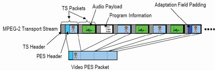 和VOD業(yè)務(wù)相關(guān)主要有3個(gè)協(xié)議,RTSP(Real Time Streaming Protocol)是一種會(huì)話控制協(xié)議,用于在IPTV網(wǎng)絡(luò)中傳送(如VOD業(yè)務(wù)的實(shí)時(shí)交互內(nèi)容),該協(xié)議基于TCP以保證可靠的控制信令傳送。RTP(Real Time Protocol)是一種無狀態(tài)的媒體流傳送協(xié)議,用于傳送多媒體內(nèi)容,該協(xié)議基于UDP或者TCP。MPEG TS(MPEG Transport Stream)包括多元的語音和視頻流封裝并承載在RTP/UDP或者直接在UDP上進(jìn)行視頻傳送。并且通過PID進(jìn)行語音和視頻的同步。TS流分為單節(jié)目的TS流(SPTS,Single Program TS)和多節(jié)目的TS流(MPTS,Multiple Program TS)兩種(見圖2)。通常情況下,一個(gè)UDP或者RTP/UDP數(shù)據(jù)包中,可以包括1~7個(gè)TS幀,一個(gè)TS幀長為188個(gè)字節(jié)。每個(gè)IP包里面包括整個(gè)或者部分視頻圖像信息。
