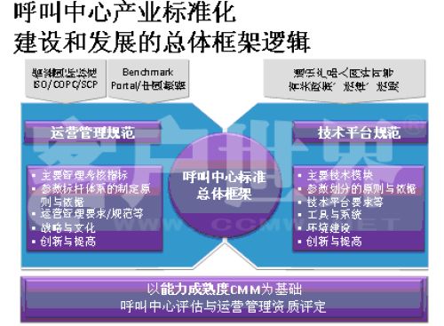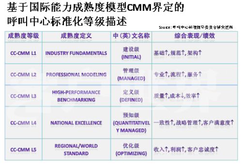 事實上,我們現(xiàn)在的標準化模型,請看一下CMM模型,該模型是基于近20年全球產(chǎn)品質(zhì)量研究成果所建立,美國的Walter Shewart于上世紀30年代發(fā)表了統(tǒng)計質(zhì)量控制成果。在Watts Hunaphrey和Ron Radice等人的研究成果之上,卡萊基.梅隆大學軟件工程研究所將這套質(zhì)量控制方法改造為能力成熟度框架并標明不同成熟度等級,率先在軟件工程、系統(tǒng)工程、系統(tǒng)采購、繼承產(chǎn)品和過程管理等領域?qū)嵺`,目前CMM模型已成為國際公認的工程規(guī)劃、質(zhì)量管理和流程運營方面的權威標準;CC-CMMTM正是CMM這一權威模型和新興市場(Emerging Markets)呼叫中心產(chǎn)業(yè)深入研究相結合的成果。。我在前幾年企業(yè)實施標準的時候深入研究了這套模型,這套模型對我們呼叫中心產(chǎn)業(yè)有極大的適用性,幾乎每個呼叫中心都可以在這套模型找到定位,從一個渾沌的初始過程到管理者,如果能夠建設一個持續(xù)的管控的流程到定義級,如何進行一致化管理,再到預知級,幾乎每個呼叫中心從大到小,從年輕到發(fā)展一段時間都可以找到自己的定位,所以我們在原來的信息產(chǎn)業(yè)指導委員會的支持下,我們重新結合CMM模型開發(fā)出了符合我們呼叫中心發(fā)展的一個標準,我建議大家把它看成是一個模型,整個國際產(chǎn)業(yè)都定性了標準,因為大家都知道CMM模型是一個開放性的知識體系,并不是一個封閉標準。CMM模型,首先你的呼叫中心建設要能夠符合呼叫中心的定義,不是找?guī)着_話機或?qū)ν庥袀一個客服號碼對外就能稱為呼叫中心。