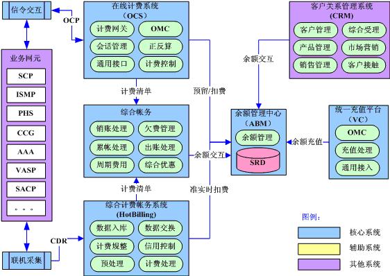 在線計(jì)費(fèi)系統(tǒng)通過(guò)實(shí)時(shí)信令交互實(shí)現(xiàn)對(duì)高風(fēng)險(xiǎn)和高價(jià)值業(yè)務(wù)的實(shí)時(shí)計(jì)費(fèi);綜合計(jì)費(fèi)帳務(wù)系統(tǒng)通過(guò)準(zhǔn)實(shí)時(shí)話單采集實(shí)現(xiàn)對(duì)后付費(fèi)用戶的準(zhǔn)實(shí)時(shí)計(jì)費(fèi);綜合帳務(wù)系統(tǒng)實(shí)現(xiàn)全業(yè)務(wù)的綜合優(yōu)惠和帳務(wù)處理;獨(dú)立的余額管理中心實(shí)現(xiàn)對(duì)電信余額的統(tǒng)一管理,未來(lái)將成為電信的“內(nèi)部銀行”;統(tǒng)一充值平臺(tái)實(shí)現(xiàn)全網(wǎng)全業(yè)務(wù)的統(tǒng)一充值支付。