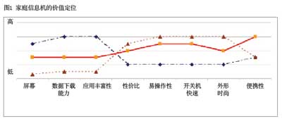 與計(jì)算機(jī)和手機(jī)對比,上網(wǎng)本和家庭信息機(jī)具有獨(dú)特的價(jià)值定位。通過藍(lán)海戰(zhàn)略分析圖,可以發(fā)現(xiàn)融合終端可能存在的市場空間。