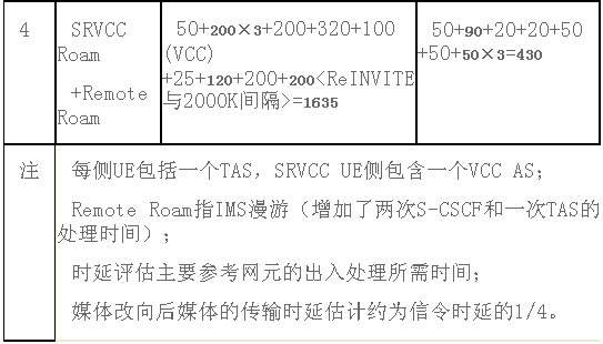 綜合2.2節(jié)的詳細詳細流程描述,分析結果表明,從切換時延看,SRVCC導致用戶通話中斷的時間主要是由于IMS核心網(wǎng)過程導致的,其主要原因是需要到遠端終端做媒體面更新,從典型網(wǎng)絡配置的測試值看,該部分時延較長(約200ms~500ms),而且變動較大,如果考慮到遠端終端的漫游情況及媒體處理能力,該時延還會大大增加,因此基本無法滿足語音業(yè)務實時性的要求;而在空中接口的中斷時間從邏輯上看,和2G/3G切換的時間相當(90ms~200ms),根據(jù)中國移動網(wǎng)絡部署經驗看,該段時延的性能基本可以滿足部屬要求。