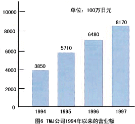 ——該公司成立于1992年,現(xiàn)在是日來第4大電話營銷專業(yè)公司。該公司是從原福武書店的電話中心獨(dú)立出來的。福武書店的”進(jìn)研學(xué)習(xí)會”(類似于中國的函授大學(xué))在日本全國擁有401萬會員。對這些會員的客戶服務(wù)目前占TMJ業(yè)務(wù)的50%,盡管TMJ成立時(shí)間不長。但由于積極引進(jìn)先進(jìn)技術(shù)(CTI,IVR,ACD,預(yù)撥號)和先進(jìn)的管理方式,發(fā)展非常迅猛。1997年?duì)I業(yè)額達(dá)到81億7千萬日元,總席位有1,500個(gè),外線數(shù)3,00O條,登錄業(yè)務(wù)代表達(dá)4,350人,該公司擁有6個(gè)呼叫中心(東京3個(gè),大販、名古屋、岡山各1個(gè)),每月平均呼入電話63萬個(gè),呼出電話60萬個(gè)。該公司的主要業(yè)務(wù)有:訂購、預(yù)約受理、促銷活動、銷售支持、客戶服務(wù)中心,其中面向消費(fèi)者/面向企業(yè)的比例為4∶1。圖6為TMJ公司1994年以來的營業(yè)額。