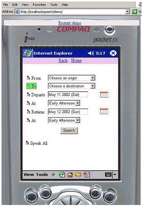 具有語音識別功能的、面向Pocket PC的應(yīng)用的演示畫面
