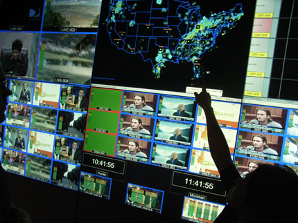 MediaFLO工作中心屏幕墻,為保證信號發(fā)送正常,天氣也是監(jiān)控目標之一
