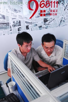 8條熱線同時開通,可以同時接收8個熱線,這大大解決了熱線“塞車”問題。在968111海都呼叫中心里,統(tǒng)一著裝、訓(xùn)練有素的接線員戴著耳麥,一邊不停地接聽報料電話,一邊手也沒閑著,在鍵盤上劈里啪啦地為前方記者輸送“新聞彈藥”。