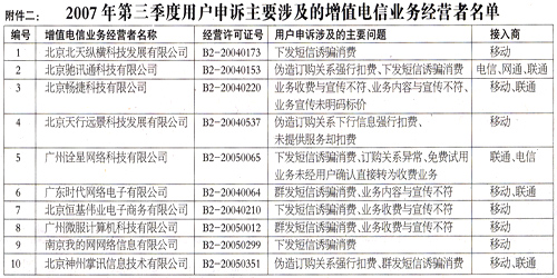 增值電信業(yè)務(wù)經(jīng)營許可證年檢“不合格”企業(yè)名單公布 2007-10-26