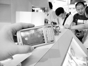 該名管理人員向記者表示,由于深圳還沒有信號,因此在會場內(nèi)的手機電視依賴放置在展臺內(nèi)一角的發(fā)射終端獲取信號!澳壳皬V州已經(jīng)有信號,但信號將逐步覆蓋至全省!彼d奮地向記者表示。據(jù)了解,該電視手機市場售價可能在2000元左右。