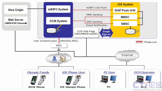 奧運(yùn)社區(qū)傳送服務(wù),簡稱OCM,是用于競賽運(yùn)營的移動通信服務(wù)機(jī)構(gòu),OCM的服務(wù)包括使用短信和彩信的信息群發(fā)以及使用即時信息和電子郵件的社區(qū)通信服務(wù)。屆時,三星北京2008WOW將根據(jù)用戶的喜好設(shè)置提供個性化的奧運(yùn)信息,分為競賽、新聞、信息、火炬接力和“我的WOW”——每個WOW用戶可以根據(jù)自身的喜好定制特殊的信息服務(wù)。