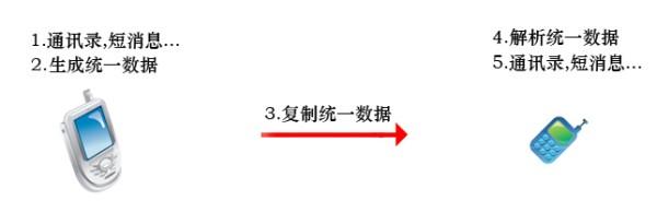 對于新出的手機型號,如果可以通過手機直接生成統(tǒng)一格式的交換數(shù)據(jù),并且可以通過手機直接解析其他手機生成交換數(shù)據(jù),示意圖如下:
