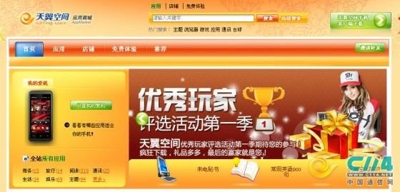四川電信天翼空間應(yīng)用商城公測版的上線公告中稱,該商城不僅為廣大用戶提供手機應(yīng)用下載,更為手機應(yīng)用開發(fā)商提供在線銷售的平臺。四川電信應(yīng)用商城目前推出了主要11類應(yīng)用,包括游戲、主題、娛樂、生活、閱讀、通訊、商務(wù)、旅行、教育、財經(jīng)、工具;軟件平臺包括WindowsMobile、 Symbian、Java、widget、BlackBerry等。
