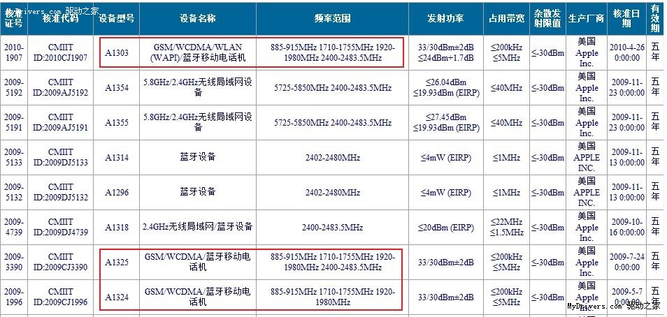 該機型號為A1303,明顯區(qū)別于目前在售的A1324(iPhone 3G)和A1325(iPhone 3GS)。而新機在設備名稱一欄中的信息更是值得關(guān)注,在原有“GSM/WCDMA/藍牙移動電話機”的基礎(chǔ)上,A1303加入了WLAN(WAPI)功能,如傳言所說一樣提供了對中國標準WAPI的支持,因而也終于迎來了WiFi的回歸。