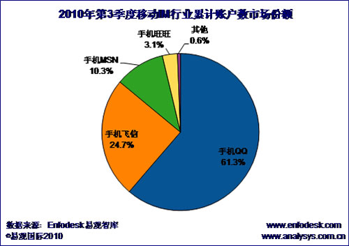 中國移動IM市場格局形成 手機(jī)QQ市占率超60%