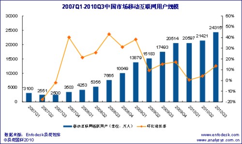 2010年第3季度中國移動互聯(lián)網(wǎng)用戶規(guī)模達2.43億