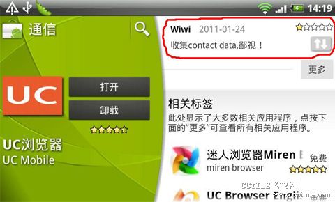 目前,很多手機(jī)社交應(yīng)用中加入了對(duì)用戶關(guān)系的抓取,這些應(yīng)用在用戶需要尋求社交關(guān)系時(shí),將讀取用戶通訊錄中的信息,并進(jìn)行自動(dòng)匹配。其中包括手機(jī)廠商HTC的HTCSENSE,UCWEB中的UC樂(lè)園,以及最近火熱的kik類(lèi)應(yīng)用,如KikMessenger,米聊、微信等。多數(shù)用戶表示對(duì)于此種抓取通訊錄的行為表示疑慮。