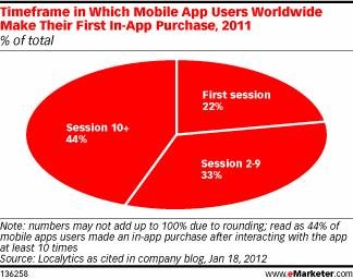 移動(dòng)應(yīng)用分析公司Localytics提供的數(shù)據(jù)顯示,增加應(yīng)用粘性對(duì)用戶重復(fù)訪問(wèn)應(yīng)用以及經(jīng)常性參與應(yīng)用內(nèi)置支付非常重要。舉例而言,連續(xù)數(shù)天玩一款手機(jī)游戲的玩家,比不經(jīng)常玩這款游戲的玩家更可能購(gòu)買(mǎi)游戲附加的內(nèi)容或功能。Localytics的研究結(jié)果表明,忠實(shí)的應(yīng)用用戶比平均用戶使用應(yīng)用內(nèi)置支付高出25%。Localytics的數(shù)據(jù)還表明,44%的智能手機(jī)用戶只有與應(yīng)用互動(dòng)10次以上,才會(huì)使用應(yīng)用內(nèi)置支付。該調(diào)查還顯示,在應(yīng)用發(fā)布12天開(kāi)始,便會(huì)有用戶使用應(yīng)用內(nèi)置支付。