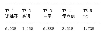 第一階段;湯森路透將每一項專利同歐洲電信標準協(xié)會截至2011年11月18日的LTE規(guī)范進行比較,確定專利的重要性。第二階段涉及先有技術檢查,即審查在美國和歐洲申請專利過程中的先有技術參考文獻。湯森路透利用先有技術參考文獻評估每項專利的新穎性并給出新穎性評級。湯森路透發(fā)現(xiàn),擁有屬于LTE標準范疇的基本與新穎專利的領先廠商有諾基亞、高通、三星、愛立信和LG。結果如下: