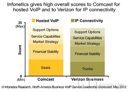 - Comcast公司在托管VoIP服務(wù)方面獲得33分的高分,滿(mǎn)分是35分;West公司、Verizon公司和8x8公司也位列北美頂級(jí)托管VoIP服務(wù)提供商。