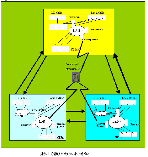 。。"對于客戶或消費(fèi)者來說,其呼叫中心場所的地理分布為多點(diǎn)式。但采取的接入設(shè)備和技術(shù)手段(包括軟件)等,則為一地集中式接入與統(tǒng)一分配來話。"