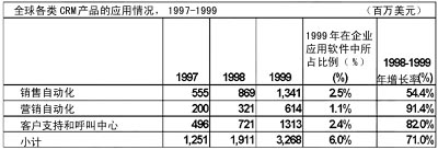 根據(jù)IDC研究,1999年全球CRM應(yīng)用軟件市場(chǎng)正式形成,并快速增長(zhǎng)。CRM軟件和服務(wù)收入的年增長(zhǎng)率高達(dá)71%,其中營(yíng)銷自動(dòng)化軟件的增長(zhǎng)率高達(dá)91.4%。