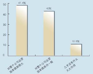 在問到實施周期上,有9家表示希望在3個月內完成,占到47.4%,有6家接受3~6個月的周期,超過6個月的周期已經顯得太長。在問到CRM的實施效果上,有9家認為對公司運營效率有很大提高,8家認為作用一般,只有2家認為沒有作用。表明基本上企業(yè)認可CRM的作用。在問到是否有專門人員負責CRM時,有6家表示有專門部門,有6家有專門人員,合計占62%,說明企業(yè)非常重視CRM的應用。
