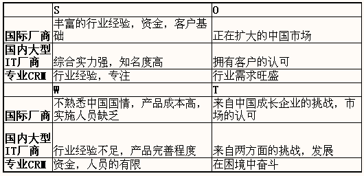 國內(nèi)的大型軟件公司,ERP+CRM的優(yōu)勢。為了擴展其產(chǎn)品線的需要,也在近幾年進(jìn)入了CRM領(lǐng)域。用友公司的金種子計劃,金碟公司的東方明珠計劃逐漸加強投入,神州數(shù)碼與臺灣軟件公司的合作恐怕也不會不對這樣一塊蛋糕有所想得。