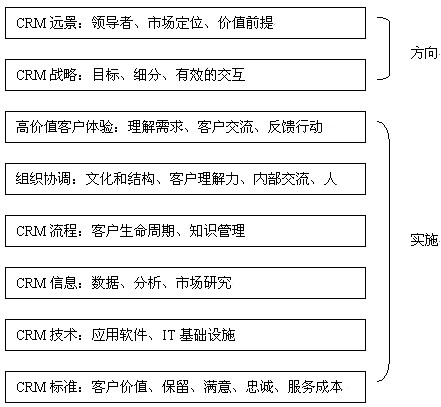 對于大多數(shù)公司而言,一個產(chǎn)品戰(zhàn)略很好理解。但是CRM戰(zhàn)略卻不太讓人理解。這是因為在CRM產(chǎn)業(yè)界、學術(shù)界對"CRM是什么"、"CRM戰(zhàn)略由什么組成"還沒有達成共識。因此,以下所闡述的CRM戰(zhàn)略并不一定勝人一籌,但我們會努力全面論述CRM戰(zhàn)略框架。我們認為一個CRM戰(zhàn)略必須包括以下幾個內(nèi)容:定義價值前提、定義客戶戰(zhàn)略、企業(yè)變革計劃。