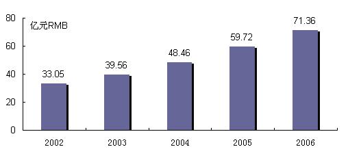 圖1 2002-2006年中國管理軟件市場規(guī)模與增長
