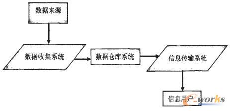 如圖1所示。CRM由數(shù)據(jù)收集、數(shù)據(jù)倉庫和信息傳輸三部分組成。數(shù)據(jù)收集系統(tǒng)將來自內(nèi)部與外部的數(shù)據(jù)送到數(shù)據(jù)倉庫,經(jīng)分析后從數(shù)據(jù)中獲得信息。數(shù)據(jù)是難以直接應(yīng)用的,而信息則揭示了一些以前并不了解的事情。