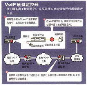 IP語音呼叫質(zhì)量無法用常規(guī)方式監(jiān)控。傳統(tǒng)的網(wǎng)絡(luò)監(jiān)控器的關(guān)注點(diǎn)是孤立的傳輸流統(tǒng)計(jì)數(shù)據(jù),而非固有的質(zhì)量、語音清晰度或最終用戶的感覺。這類傳統(tǒng)的工具提供有關(guān)鏈路吞吐量和利用率、抖動、延時(shí)、錯誤、包丟失總數(shù)或丟包率的孤立的數(shù)據(jù)。然而,這些統(tǒng)計(jì)數(shù)據(jù)沒有揭示呼叫質(zhì)量,因?yàn)樗鼈兒鲆暳蒜Оl(fā)丟失,不理會抖動緩沖區(qū)造成的包丟棄,沒有考慮網(wǎng)絡(luò)故障對用戶感覺造成的影響。