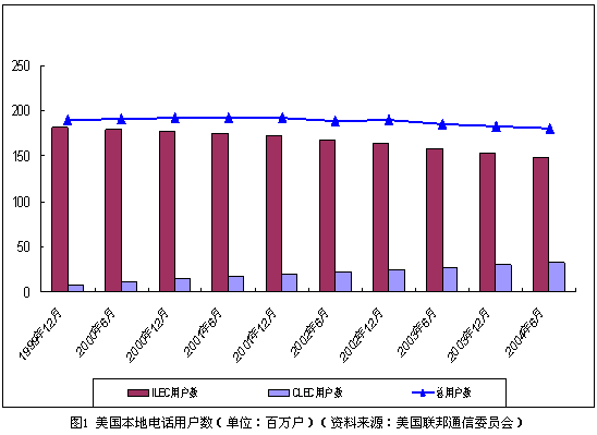 就整體而言,美國(guó)本地電話用戶總量穩(wěn)中有降,移動(dòng)通信的替代作用開始顯現(xiàn)。截止到2004年6月,包括住宅和商業(yè)用戶,美國(guó)本地電話用戶總量達(dá)到1.81億戶。但與3年前相比,美國(guó)本地電話用戶數(shù)量實(shí)際減少了近1200萬戶。與此同時(shí),移動(dòng)用戶數(shù)量迅速增長(zhǎng)。截止到2004年6月,美國(guó)移動(dòng)電話用戶數(shù)比上年同期增長(zhǎng)13%,達(dá)到1.673億戶,基本接近固定電話用戶的數(shù)量。