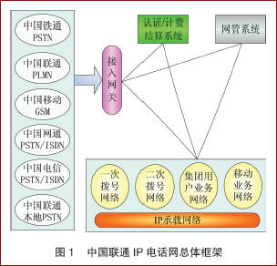 中國聯(lián)通IP電話網(wǎng)自1999年6月入運(yùn)營以來,經(jīng)過一期、二期和三期工的建設(shè),目前,網(wǎng)絡(luò)已覆蓋中國329個(gè)地市,E1端口規(guī)模超過1.8萬個(gè),成為全球最的IP電話網(wǎng)絡(luò)。網(wǎng)絡(luò)的話務(wù)量已經(jīng)達(dá)到月近10億分鐘,已是世界上流量最大的電話網(wǎng)絡(luò)。中國聯(lián)通IP電話網(wǎng)總體框架圖1所示,包括IP承載網(wǎng)絡(luò)、業(yè)務(wù)網(wǎng)絡(luò)(包式括一次撥號(hào)業(yè)務(wù)網(wǎng)、二次撥號(hào)業(yè)務(wù)網(wǎng)、集團(tuán)用戶業(yè)務(wù)網(wǎng)和移動(dòng)用戶業(yè)務(wù)網(wǎng))、IP電話網(wǎng)絡(luò)管理設(shè)備(如計(jì)費(fèi)結(jié)算系統(tǒng)、網(wǎng)管系統(tǒng)等)、與各類本地網(wǎng)絡(luò)連接的接入網(wǎng)關(guān)等部分。